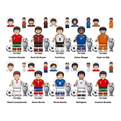 10-teiliges Fußballstar-Charakterset, Bausteine, Kinderspielzeug, mit Trophäe
