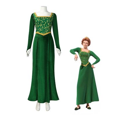 Prinzessin Fiona Kostum Damen Halloween Karneval Cosplay Grun Langarm Maxikleid