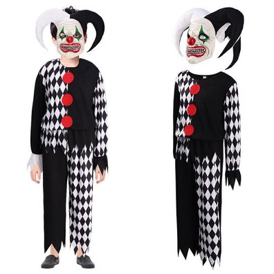 Kinder Evil Clown Cosplay Kostum Halloween Party Jumpsuit+Maske+Headwear Outfits