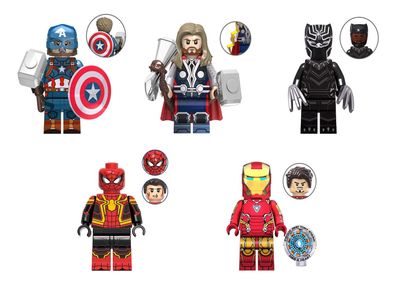 5x Superhelden Minifiguren Set Bausteine Figuren kompatibel Iron Man Spider Man Thor