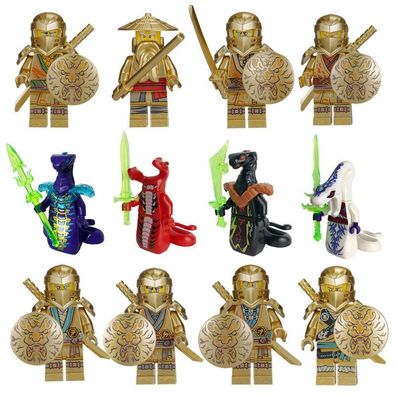 12x Ninja Minifiguren Set Bausteine Figuren kompatibel Sensei Wu Lloyd Gold