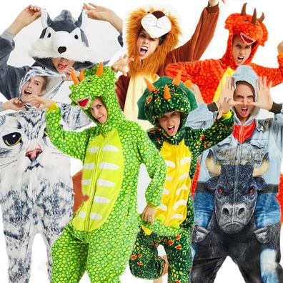 Dinosaurier Panda Fuchs Onesie Damen Tier Cosplay Pyjamas Plusch Halloween Winter