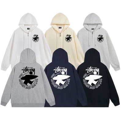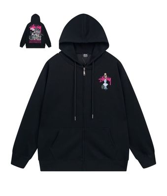 Stussy Herren Zip Hoodie Streetwear Kapuzenjacke mit Logo Print Oversize