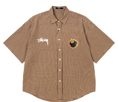 Stussy Herren Kurzarm Hemd Kariert Streetwear Sommer Hemd mit Stickerei Logo