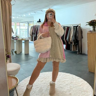 Grobstrickpullover Damen Eva Taupe Damenpullover Frauen Pullover Onesize XS-XL