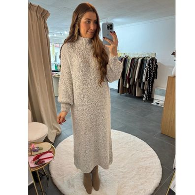 Strickkleid Damen Langes Kleid JANA Hellgrau Onesize XS-XL langarm Damenkleid Frau