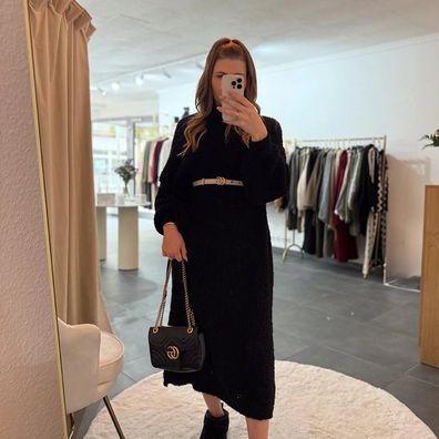 Strickkleid Damen Langes Kleid JANA schwarz Onesize XS-XL langarm Damenkleid Frau