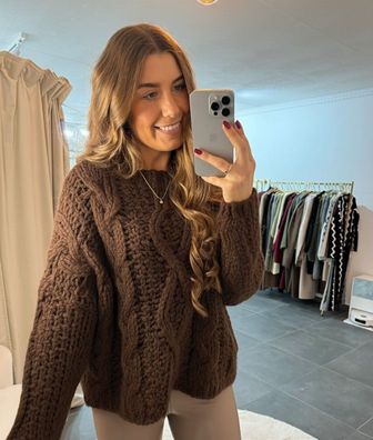 Grobstrickpullover Damen Eva Dunkelbraun Damenpullover Frauen Pullover Onesize XS-XL