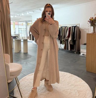 Strickjacke Long Damen Lena Beige Onesize XS-XL Frauen Langer Strick Jacke