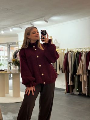 Cardigan mit Rüschen Jacke Leonita Weinrot Onesize XS-XL Damen Langarm Cardigan