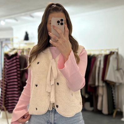 Weste Herz Damen Madita Weiß Größe M-L Frau Weste mit Schnürverschluss Ärmellos
