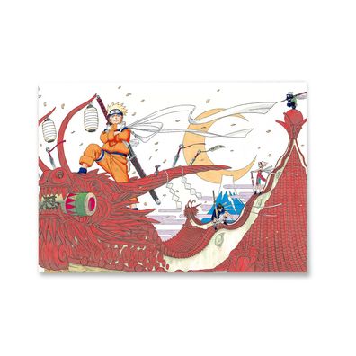 Hochwertiges Naruto Rollbild aus Stoff mit Schattenriss | Kakemono 142x33cm | Inkl. H
