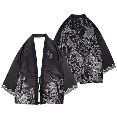 Kimono Jacke mit japanischem Koi Karpfen Motiv | Japan Haori Umhang