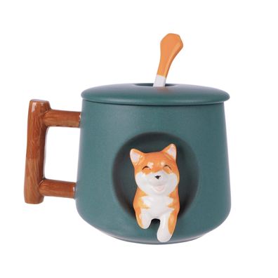 Süße Shiba Inu Tasse mit Deckel & Löffel | Hunde Kaffeetasse | Steinzeug | 380ml