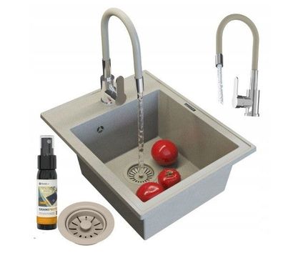 Granitspüle Beige FERRUM 49x45cm, SET 7 in 1, Armatur Siphon