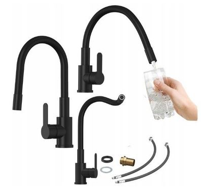 Küchenarmatur Flexibel Spültischarmatur Wasserhahn Armatur Küche Schwarz/Inox EU-WARE