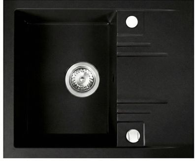 Granitspüle BELLO 57x47, 1 Becken Abtropffläche Set flexibel Armatur Siphon Schwarz