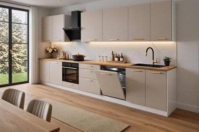 Küchenzeile Linea 340 cm Kaschmir Matt-Soft Close- Premium Box- Einbauküche 3,4 m