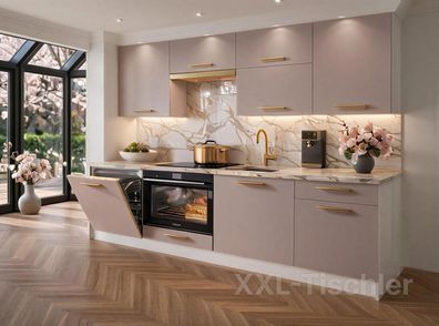 Küchenzeile Emma 340 cm DW Puderrosa Matt- Küche, Küchenblock 3,4m, mit Arbeitsplatte