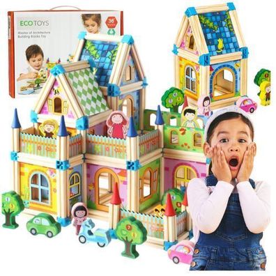 Holzbausteine HAUS 6in1 Grosses SET 128tlg