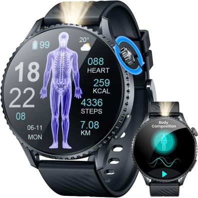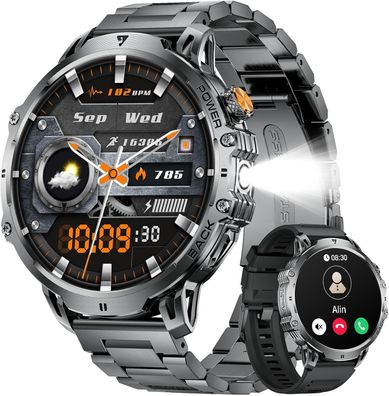 Militär Smartwatch Herren 1,85" HD Touchscreen, 110+ Sportmodi, IP68 wasserdicht