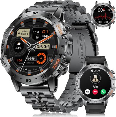 Smartwatch Herren 1,45" AMOLED, Telefonfunktion, IP68 Fitnessuhr Metall, 100 Sportmod