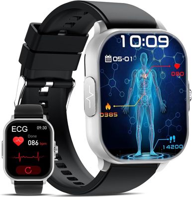 2025 Smartwatch Herren Damen 2,01" HD-Display, EKG+HRV Gesundheitsuhr, IP67