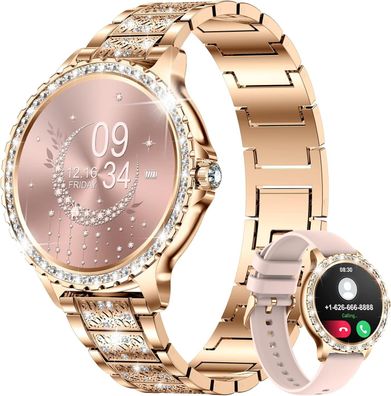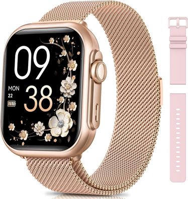 Smartwatch Damen 1,85" HD Rose Gold, Bluetooth-Anruf Fitnessuhr mit 110 Sportmodi IP6