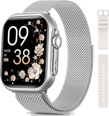 Smartwatch Damen 1,83" Silber, 1000 mAh Akku 100 Tage Standby, Bluetooth Fitnessuhr