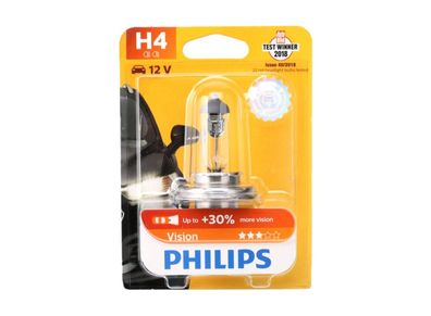 Philips H4 Vision + 30 % 12V 60/55W Scheinwerferlampe 12342PRB1 1er Blister