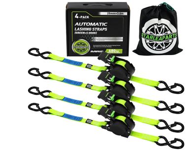 StarLeaparts 4x Automatik Spanngurt 3,6m 680kg Ratsche S-Haken Zurrgurt