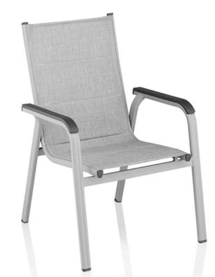 BasicPlus Padded Stapelsessel, silber / hellgrau, Alu / Textilene, stapelbar