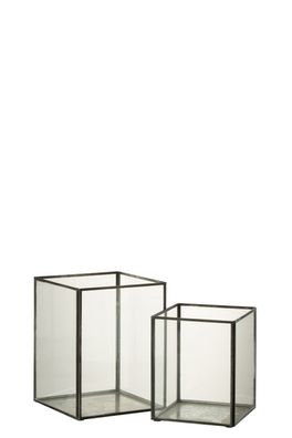 2 Kerzenhalter Viereckig Glas / Metall Schwarz