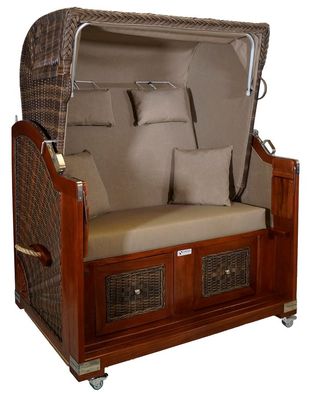 Strandkorb Mahagoni beige 2 Sitzer Voll-Liegemodell