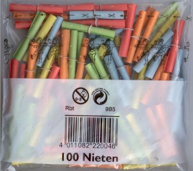 100 Tombolalose Röllchenlose Nieten, Buntgemischt