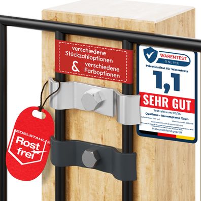 Qualinos 3mm dicke V2A Klemmplatten für Doppelstabmattenzaun & Stabmattenzaun