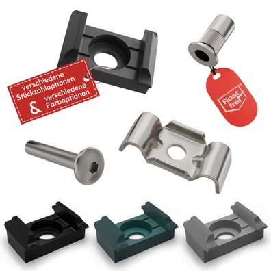 Qualinos Klemmbock & V2A Nietmutter für 40mm Pfosten Set (Versch. Farben und Anzahl)