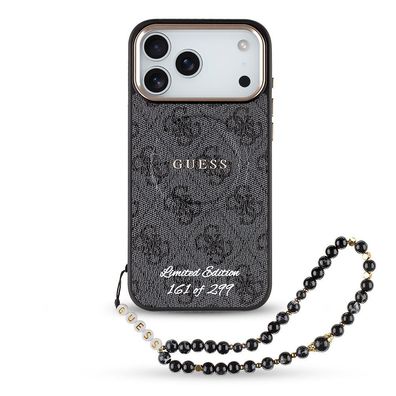 Limited Edition Hülle Case iPhone 17 Pro Max Guess Kunstleder grau Kette MagSafe