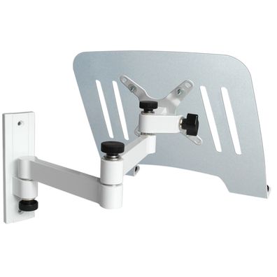Silberne Wandhalterung mit weißer Ablageplatte für Notebook Laptop Tablet PC