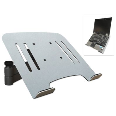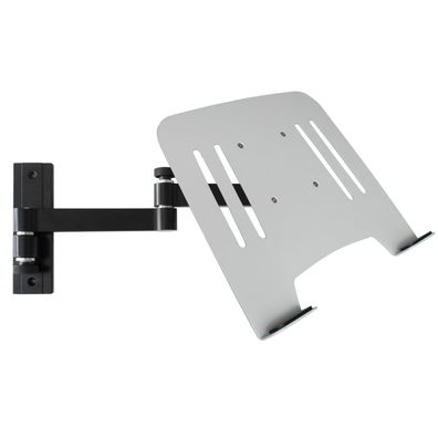Silberne Wandhalterung mit schwarzer Ablageplatte für Laptop Tablet PC neigbar