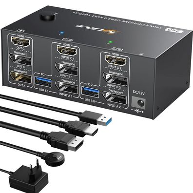 Youtinghdav USB 3.0 KVM Switch 2 PC 3 Monitore 8K 60Hz 4K 144Hz