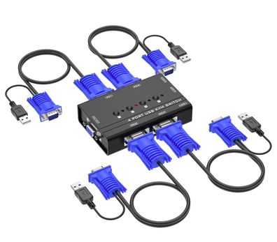 Yinker VGA KVM Switch 4 Port Umschalter fér Tastatur Maus USB