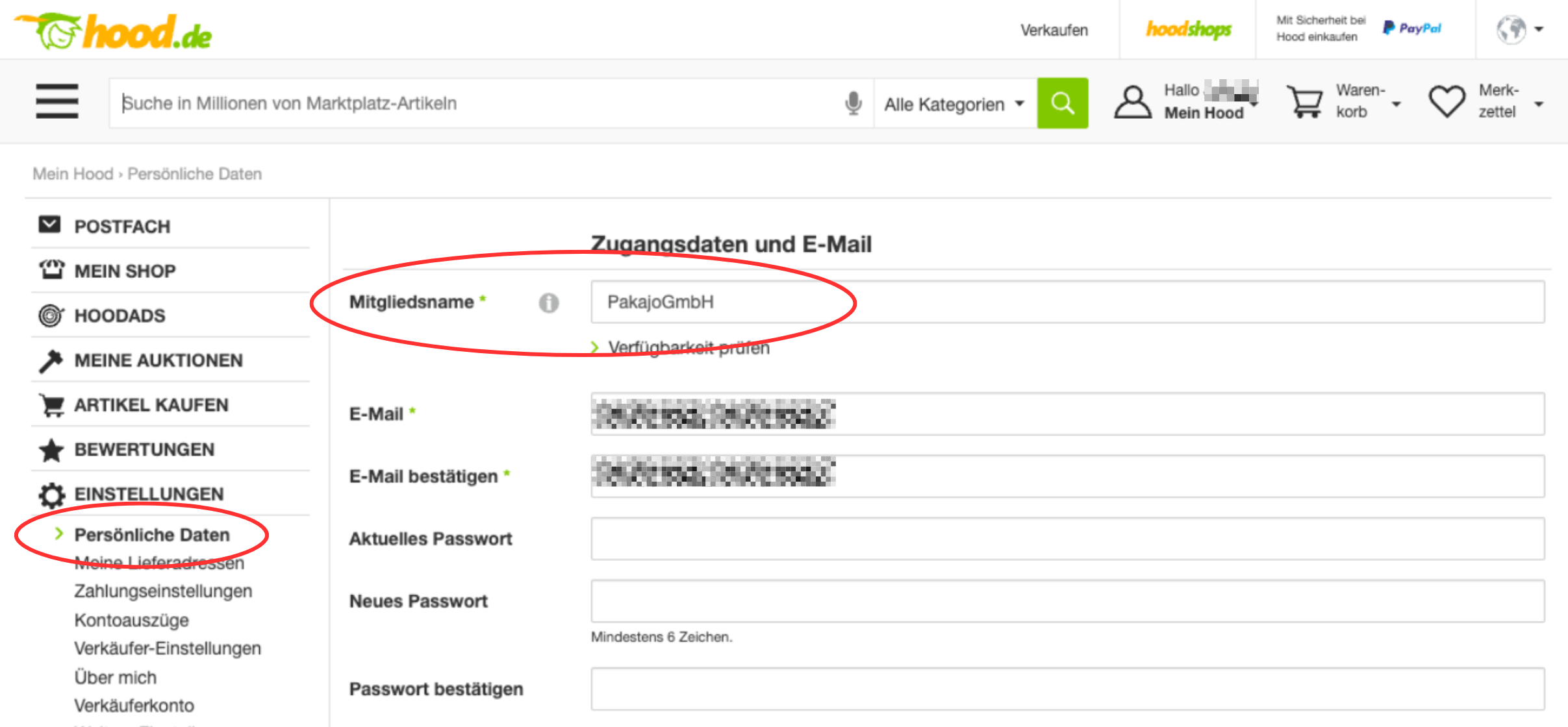 - Öffnen Sie Hood.de und loggen Sie sich bitte mit Ihren Zugangsdaten ein.