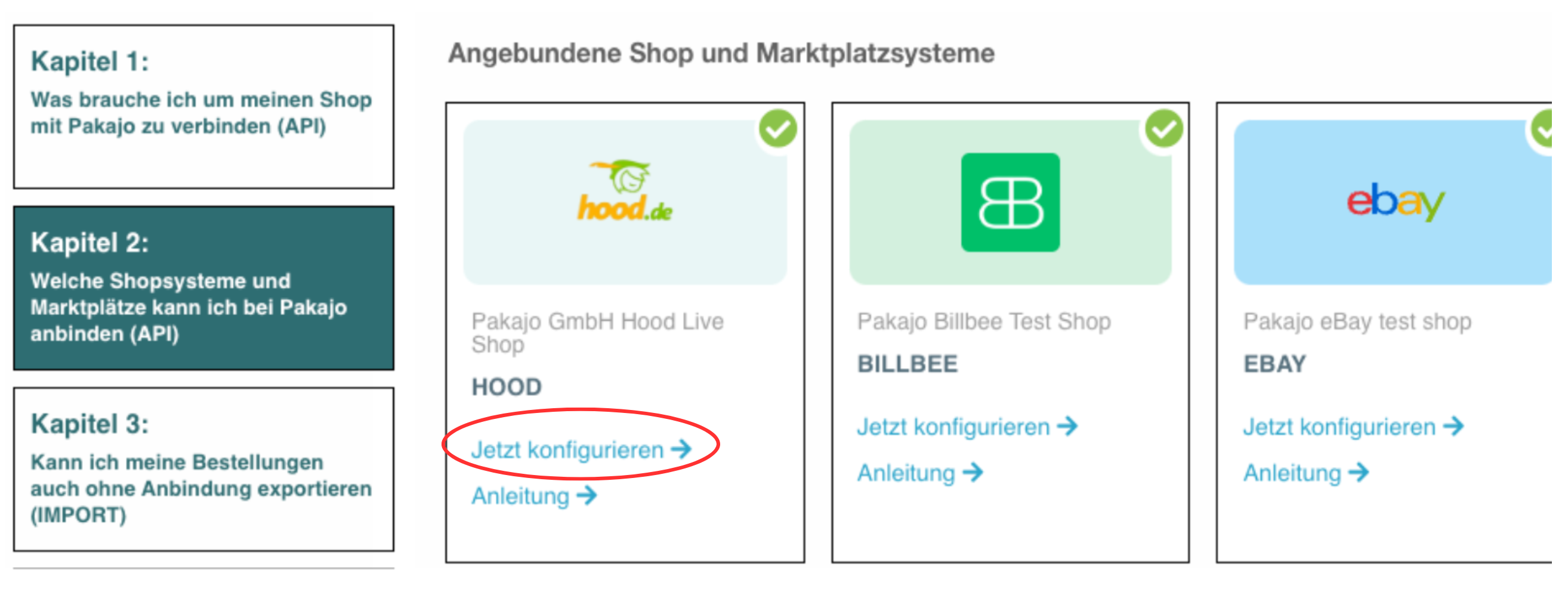 - Wählen Sie "Shops und Marktplätze anbinden".